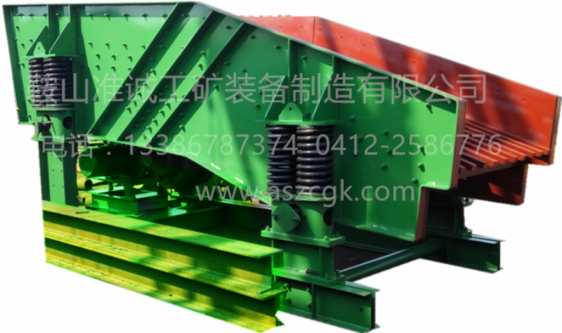 此款棒條式給料機通過角帶驅(qū)動箱式激振器,使給料機產(chǎn)生直線運動軌跡。機體結構為框架式,環(huán)槽鉚釘聯(lián)接,襯板、棒條采用錳鋼制造,結構強度高,耐磨損,耐撞擊。特別適合于做建筑石料、金屬礦石大破碎的給料用。